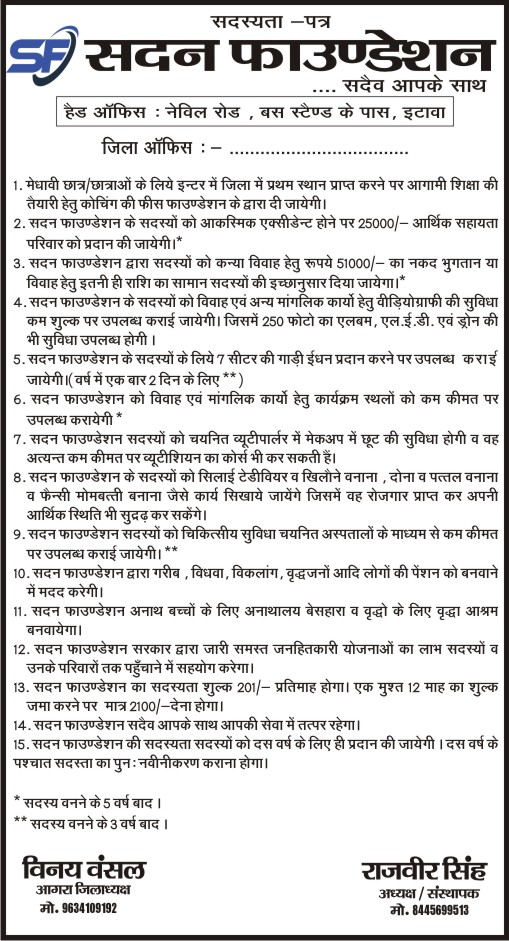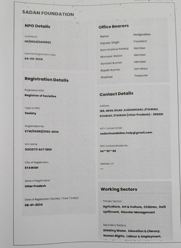You can view and download the official certificates and important documents of Sadan Foundation from this page.